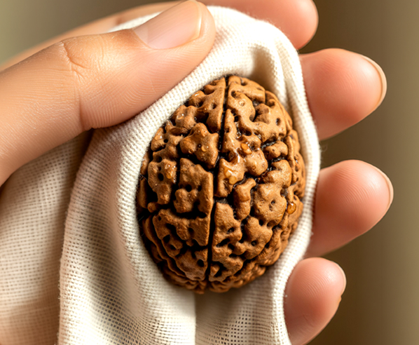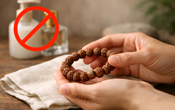 Remove your Rudraksha before using soaps, perfumes, or cleaning agents to preserve its natural energy.